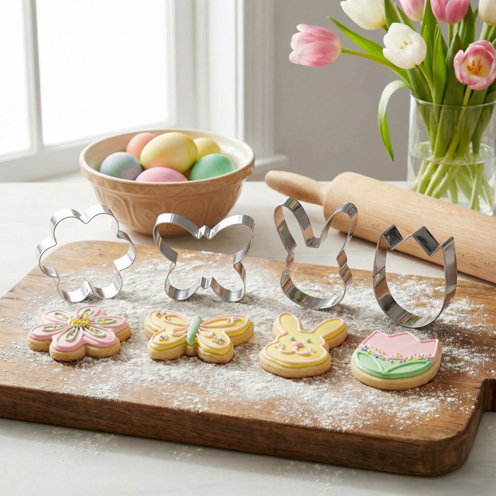 Készítse el a legvidámabb húsvéti süteményeket ezzel a praktikus sütikiszúró szettel! A csomag 4 darab fémből készült kiszúrót tartalmaz, különböző húsvéti formákkal: nyuszi, pillangó, virág és tojás. A rozsdamentes fém kivitel tartósságot biztosít, így a formák hosszú ideig használhatók. Ideális választás sütemények, mézeskalácsok vagy akár fondant és egyéb desszertek díszítésére. Tökéletes eszköz családi sütögetésekhez, húsvéti készülődéshez és kreatív konyhai pillanatokhoz.