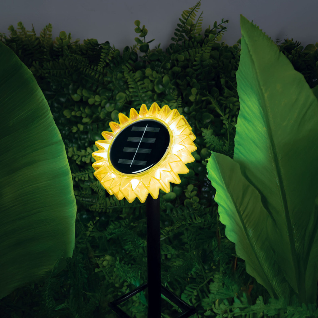 Ez a dekoratív szolár napraforgó lámpa hangulatossá varázsolja kertjét vagy teraszát. A többféleképpen rögzíthető kialakításnak köszönhetően leszúrhatóként és felakasztva is használható, így könnyedén illeszkedik bármilyen kültéri környezetbe. A beépített napelem napközben hatékonyan gyűjti a napfényt, melyből energiát biztosít az esti melegfehér LED világításhoz. A lámpa automatikusan kapcsol be sötétedés után, így nemcsak szép, de praktikus megoldás is a kert díszítésére.