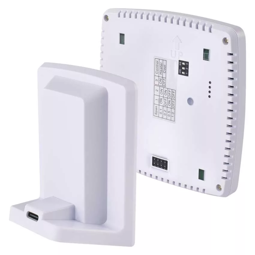 Termosztát típusa: vezeték nélküli, OpenTherm kommunikációval, Vezérlés típusa: programozható elektronikus szobatermosztát, Háttérvilágítású kijelző, Vezérlésmód: melegítő és hűtő rendszer, Programok száma: 6 + 3 felhasználó által állítható, Hőmérséklet szabályozás típusa: kényelmi és gazdaságos hőmérséklet, Hőmérsékletmérés: 0 °C és 40 °C, Felbontás 0,1 °C, Hőmérséklet beállítása: 7 °C és 30 °C, 0,2 °C-onként, Állítható hőmérséklet szórás: 0,1 °C, 0,2 °C, 0,5 °C, 1,0 °C, Fagyvédelem, ON/OFF funkció, Szünidő üzemmód, Hatótávolság szabad területen: 100 m, Üzemi frekvencia: 868 MHz, Kapcsolás: 230 V AC vagy feszültségmentes, Kapcsolt terhelés: 16 A-es ellenállás, 5 A-es induktív, Szín: fehér, Az adó tápellátása: 2x 1,5 V AA (a csomag tartalmazza) vagy 5 V USB adapter (nem tartozék), A vevő tápellátása: 230 V AC, A vevő mérete: 115 x 37 x 91 mm, Az adó mérete: 98 x 55 x 98 mm, Értékesítési csomagolás: 1 db, kis doboz, Hőmérséklet kalibrálása, Garancia-időszak: 2 év